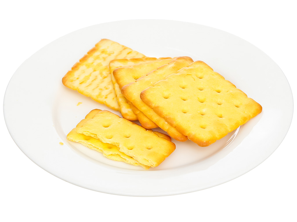 Bột mì (60%), dầu thực vật (dầu cọ), shortening (dầu cọ), đường, mạch nha, chất béo thay thế bơ, bột whey, chất tạo xốp (amoni hydro carbonat (503ii), natri hydro carbonat (500ii)), muối, bột nếp, chất xơ, vảy khoai tây, bột phô mai,..
