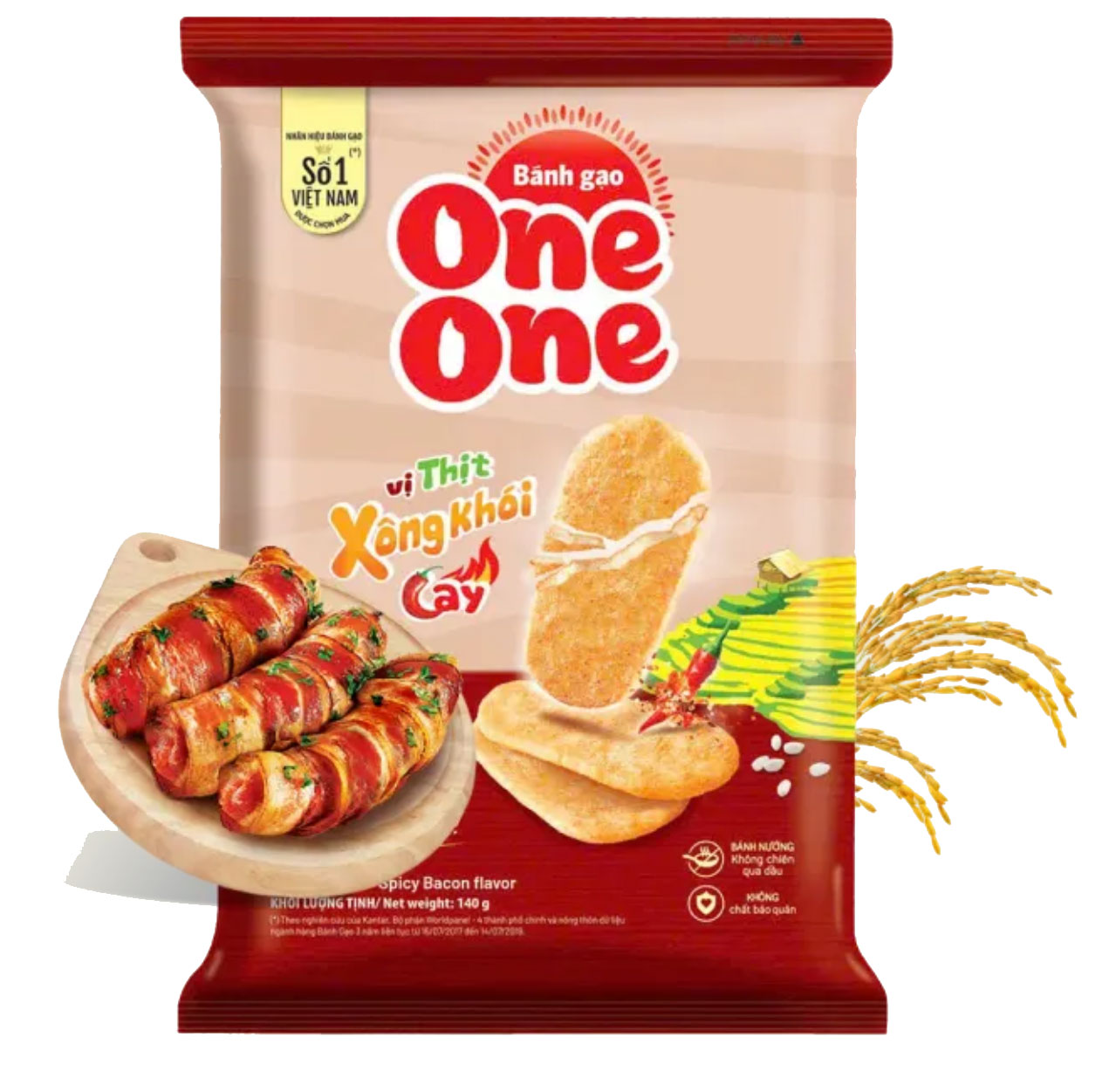 Lấy cảm hứng từ tinh thần ẩm thực rực rỡ của Mexico – nơi mỗi bữa ăn là một lễ hội, Bánh gạo One One vị Thịt Xông Khói Cay mang đến trải nghiệm đa tầng vị giác với mùi khói thơm, vị mặn béo đậm đà và hậu vị cay nhẹ đầy cuốn hút.