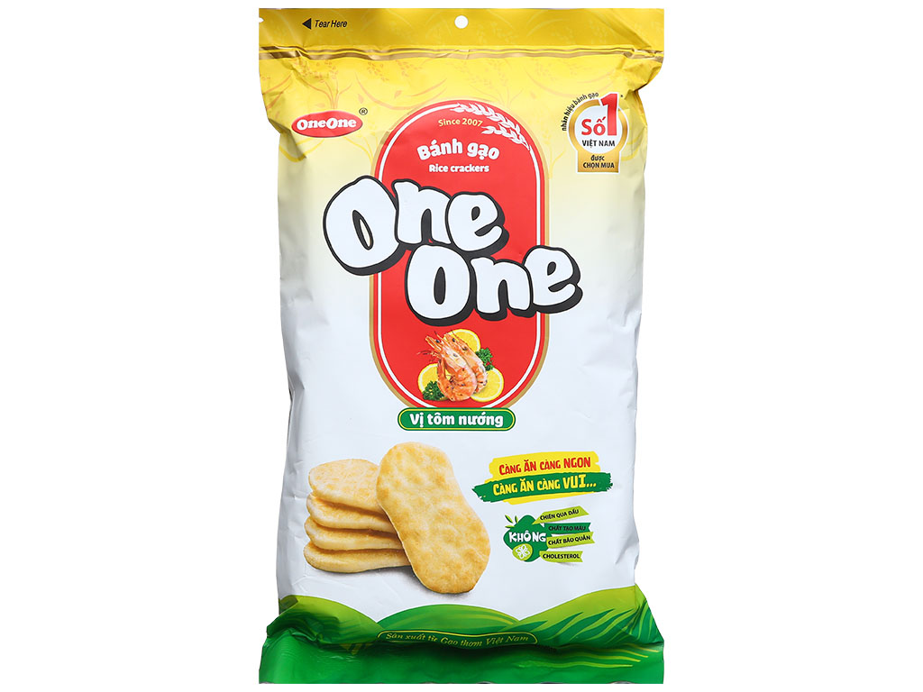 Gạo thơm (63%), đường tinh luyện, dầu thực vật, tinh bột biến tính, glucose, muối tinh, gia vị tôm(1,2%).