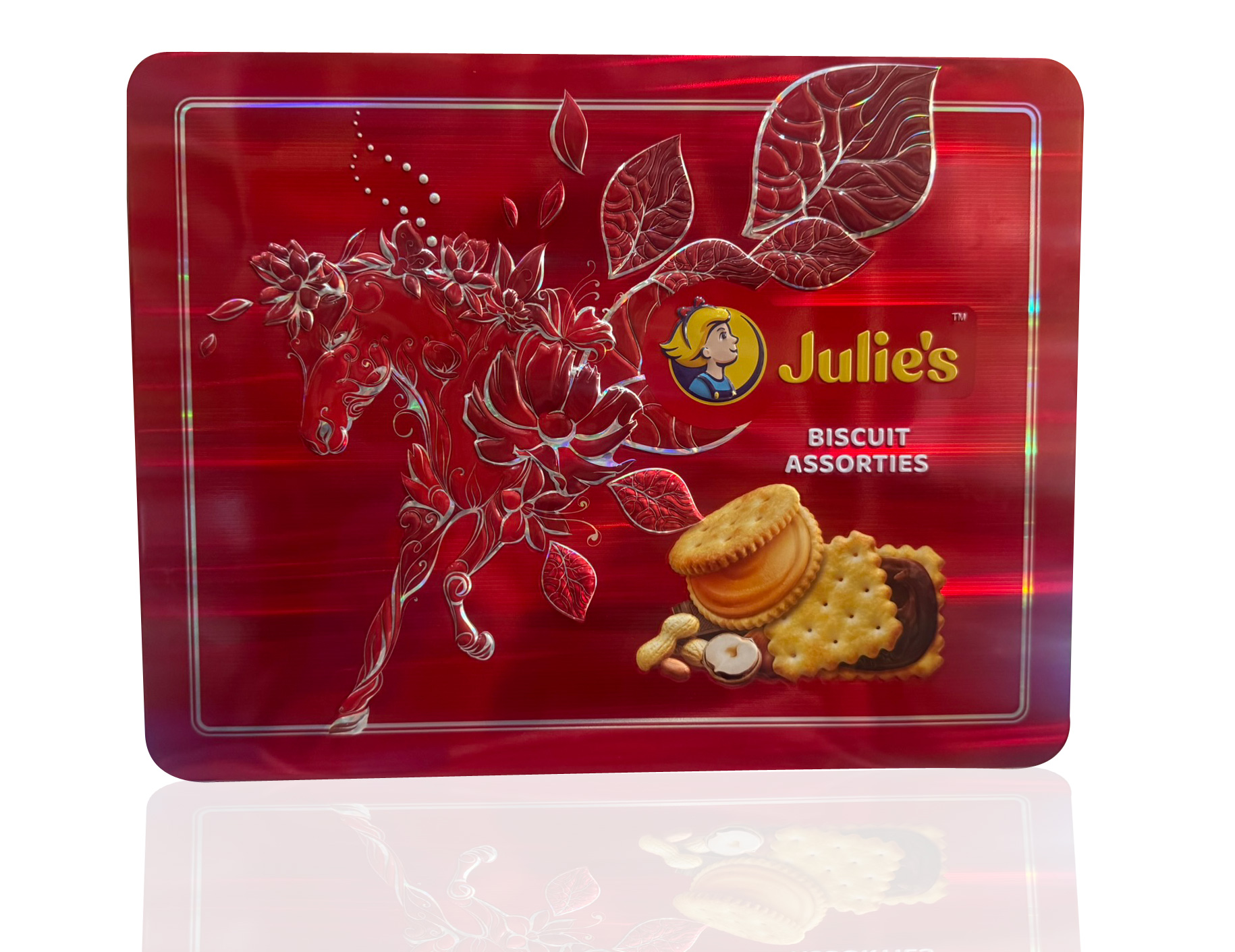 Hãy tận hưởng những khoảnh khắc ngọt ngào và ấm áp bên gia đình và bạn bè với bánh hộp thiếc Julie's thập cẩm 336G. Đây chắc chắn là món quà ý nghĩa và thiết thực mà bạn có thể dành tặng cho những người thân yêu.