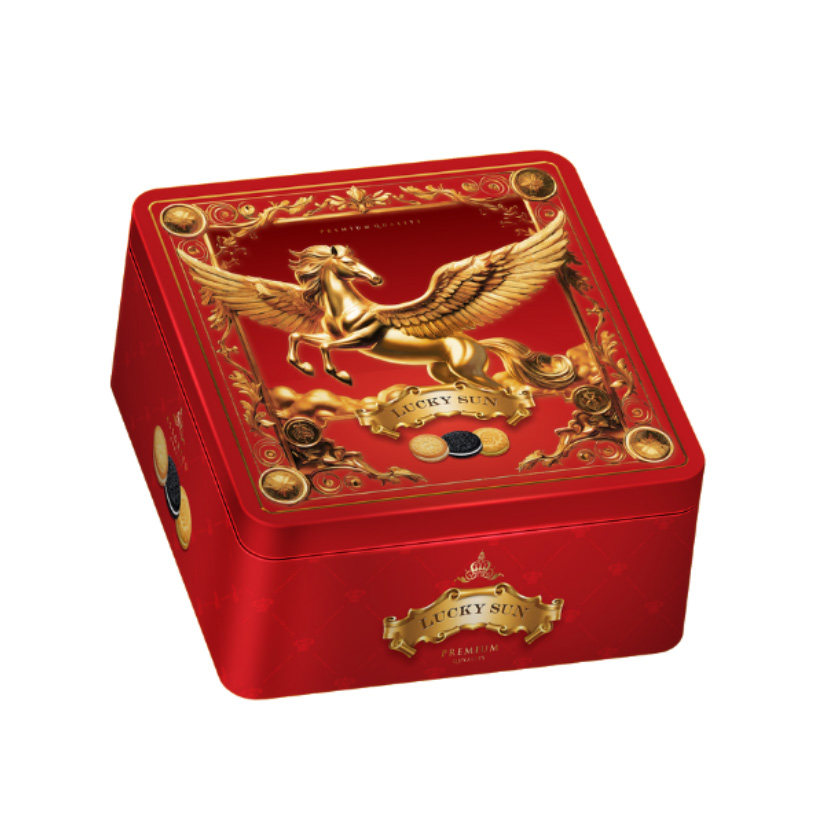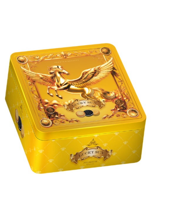 Sản phẩm được đóng gói trong hộp thiếc tinh tế, sang trọng, với hình ảnh chú ngựa – biểu tượng của may mắn, sức mạnh và sự thịnh vượng. Không chỉ là món bánh ăn vặt thơm ngon, Luckysun còn là lựa chọn quà biếu ý nghĩa, tinh tế cho gia đình, bạn bè hay đồng nghiệp trong các dịp đặc biệt.