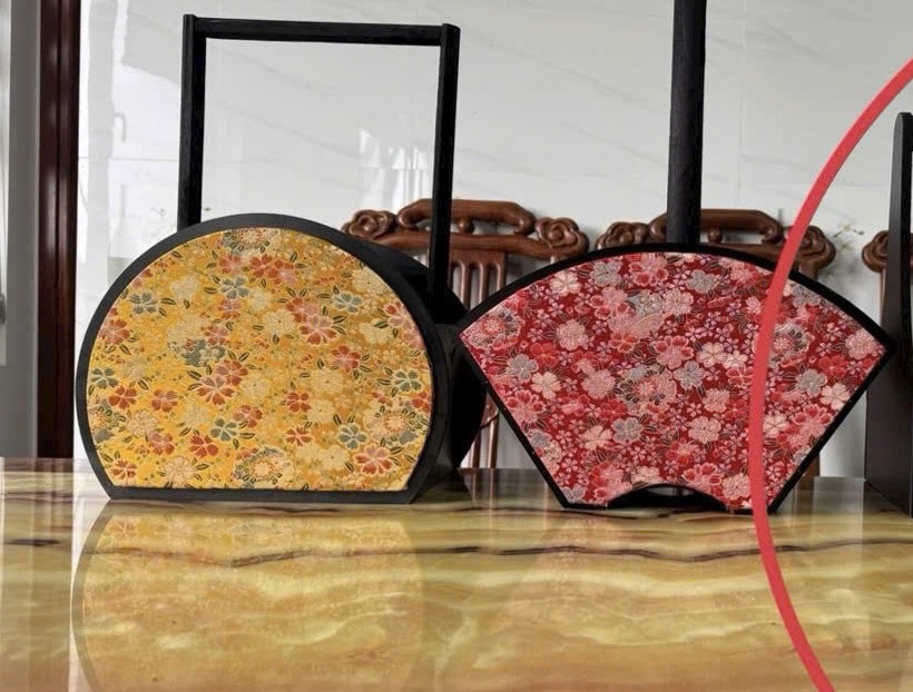 Chúng tôi đặc biệt cung cấp mẫu Giỏ Cây (tay xách cao) với thiết kế hình bán nguyệt và hình quạt, bọc họa tiết vải gấm sang trọng (như mẫu vàng và đỏ/hồng), giúp món quà của bạn trở nên nổi bật và dễ dàng xách biếu.