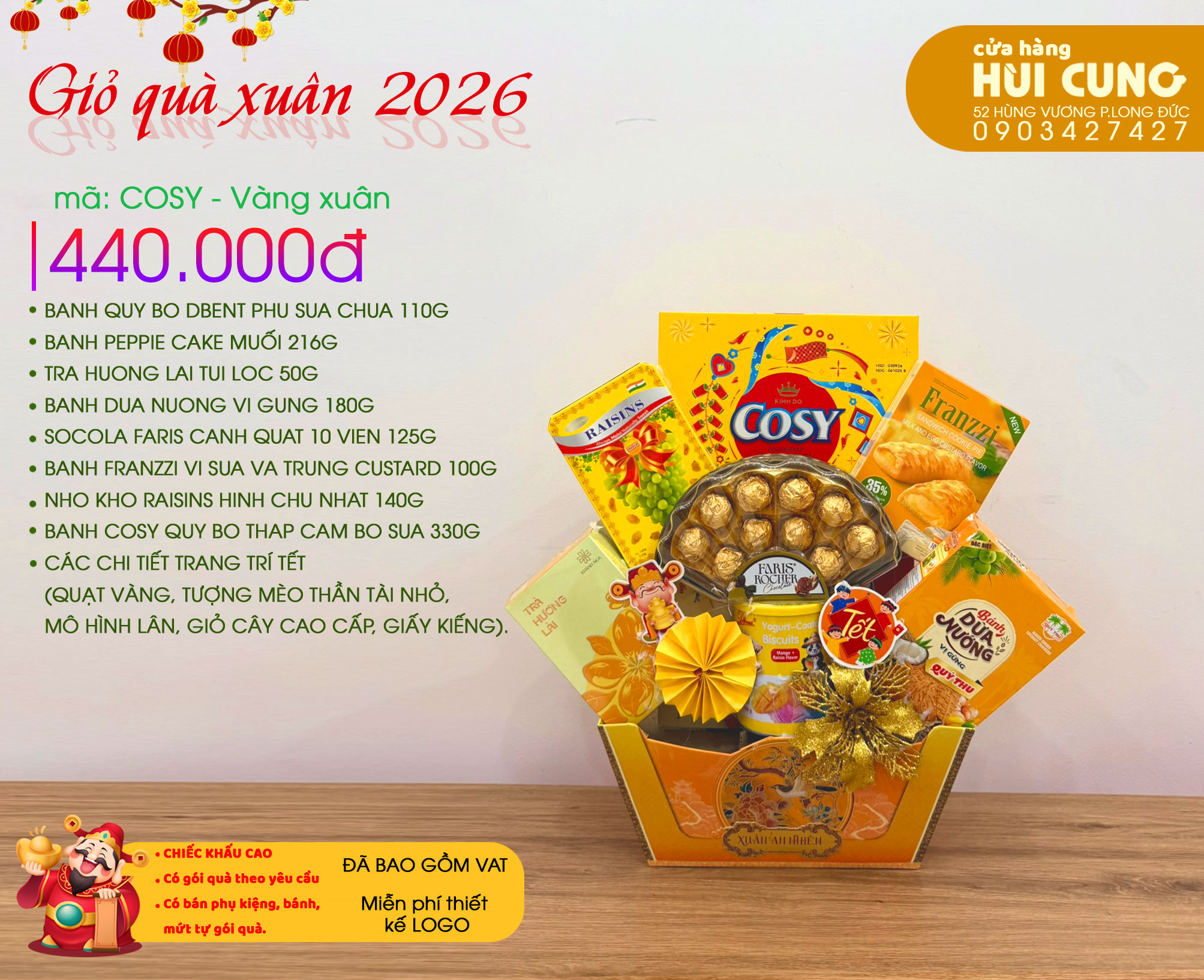Tiêu đề: Giỏ Quà Tết Cosy Vàng Xuân – Rực Rỡ & May Mắn