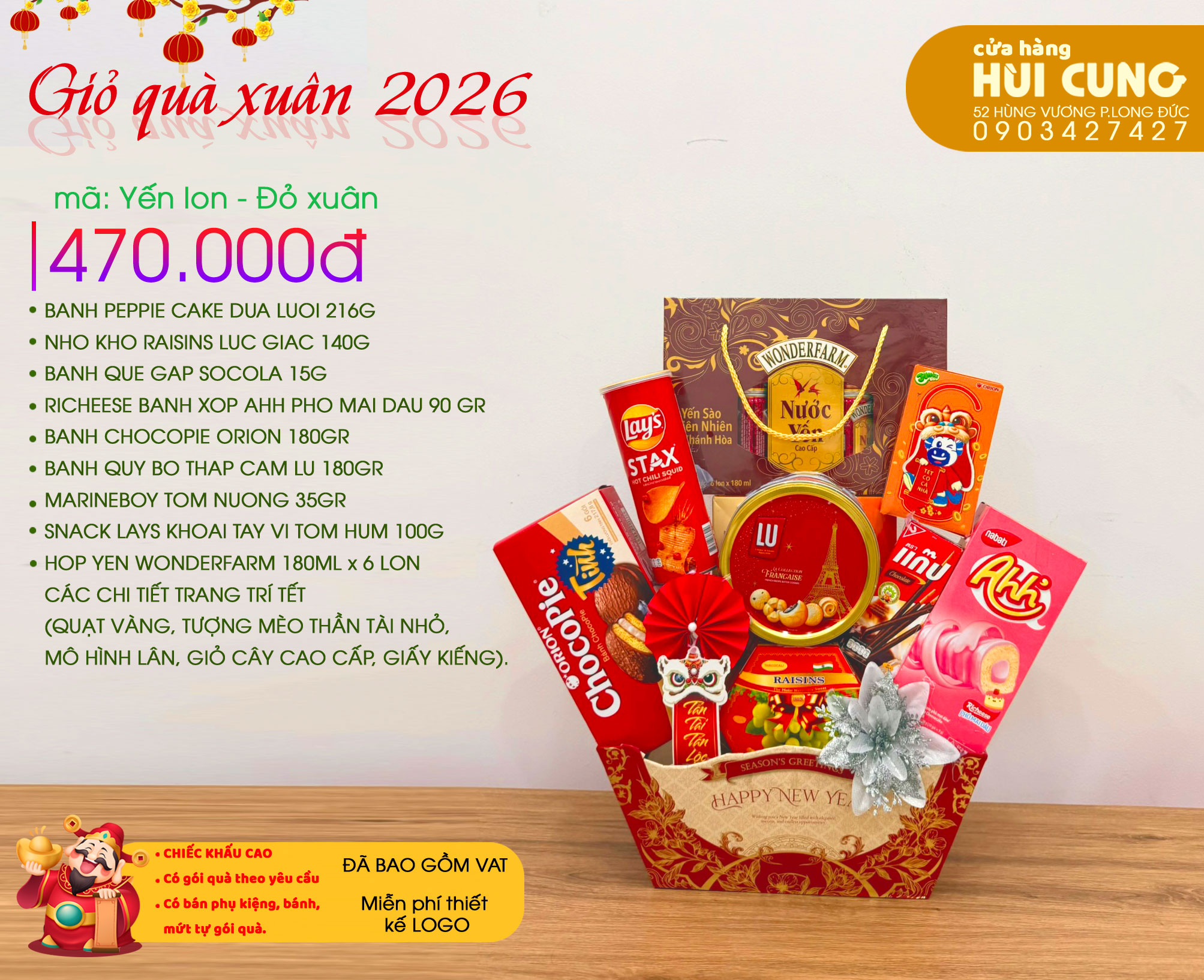Tiêu đề: Giỏ Quà Tết Yến Lọn Đỏ Xuân – Sức Khỏe & May Mắn