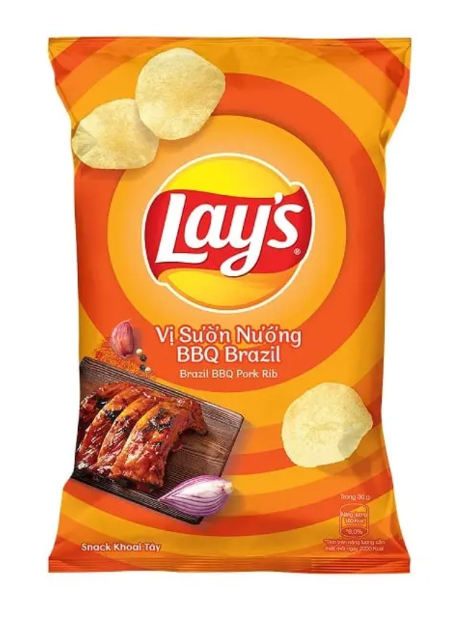 Khoai Tây, Dầu Cọ, Bột Gia Vị Sườn Nướng Bbq Brazil. Trong Thành Phần Bột Gia Vị Sườn Nướng Bbq Brazil: Đường, Maltodextrin, Muối , Chất Điều Vị, Axit Citric, Chất Chống Đông Vón, Màu Tự Nhiên, Chất Tạo Ngọt, Hương Liệu Giống Tự Nhiên, Nước Tương. Sản Phẩm Có Chứa Nguyên Liệu Từ Đậu Nành.