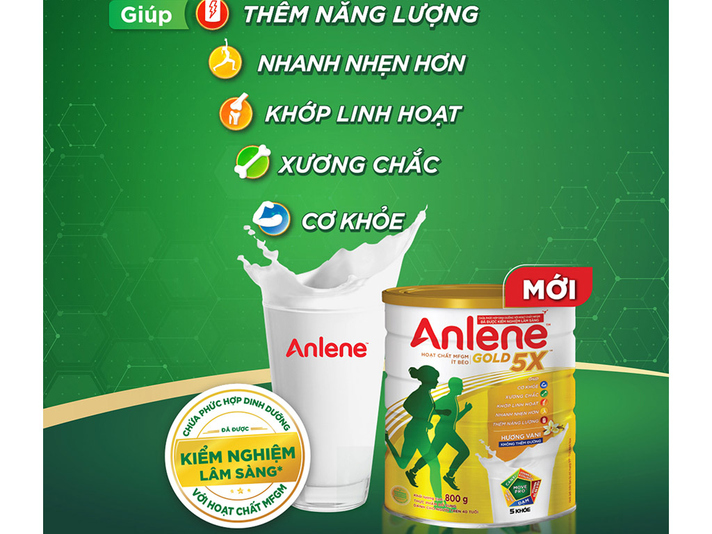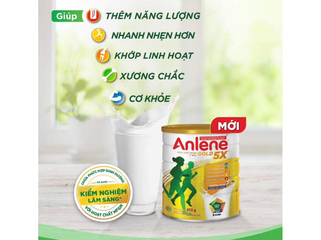 Anlene Gold 5X hay còn có tên gọi là Anlene 5 Khoẻ mới là sản phẩm sữa có hương vani ngọt dịu, giàu canxi và ít chất béo, dễ uống đối với những người lớn tuổi. Ngoài ra, sản phẩm còn chứa nhiều dưỡng chất thiết yếu giúp hỗ trợ hệ Cơ - Xương - Khớp khỏe mạnh. Sản phẩm sở hữu công thức đặc biệt giúp