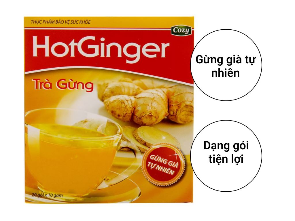 Trà gừng giúp ôn trung, tán hàn, hỗ trợ cơ thể khi bị cảm lạnh, chân tay lạnh, đau bụng, buồn nôn, giúp làm ấm cơ thể. Ngoài ra, trà gừng còn có nhiều tác dụng khác đẩy lùi bệnh tật. Đây là sản phẩm có thành phần bột gừng được chiết xuất từ 100% củ gừng già, đường tinh luyện, được đông đảo người Việt tin dùng và còn làm quà tặng người thân yêu.